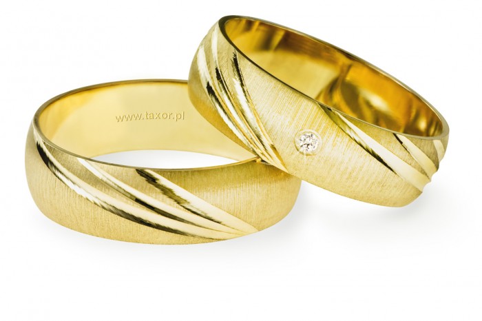 Interesujące matowe obrączki o szerokości 6 mm wykonane z żółtego złota w technologii bezszwowej. Na całym obwodzie nacięte są ozdobne rowki. Pomiędzy nacięciami można oprawić do 3 szt. kamieni.