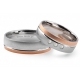 Eleganckie obrączki dwukolorowe w wersji matowanej wykonane z białego i różowego złota w technologi bezszwowej. Niesymetryczne pierścienie i oprawa kamieni czynią ten wzór bardzo oryginalnym i dodają obrączkom niezwykłego uroku.