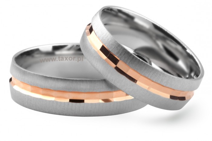 Eleganckie obrączki dwukolorowe w wersji matowanej wykonane z białego i różowego złota w technologii bezszwowej. Polerowany fazowany pierścień wewnętrzny czyni ten wzór bardzo oryginalnym i dodaje obrączkom niezwykłego uroku. W tym modelu nie można oprawiać kamieni.