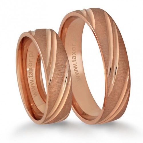 Obrączki z kolekcji ORO LIGHT ze względu na atrakcyjną cenę i ciekawe wzornictwo niezmiennie cieszą się dużym powodzeniem. Wzór R-10 w wersji standardowej ma powierzchnię matowaną a rowki polerowane, ale na życzenie klienta można to zmienić. Ze względu na bogate zdobienia producent nie przewiduje w tym modelu oprawy kamieni. Powierzchnia obrączek może być polerowana lub matowana. Standardowo szerokość wynosi 5 mm, ale producent umożliwia zmianę tego parametru. Można również zamówić wersję masywniejszą zwiększając wysokości profilu (grubość).