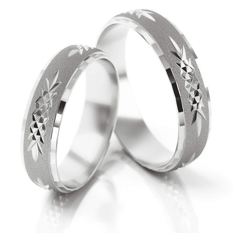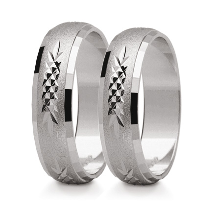 Obrączki STELMACH z białego złota wykonane w technologii bezszwowej. Powierzchnia ozdobiona jest nacięciami na całym obwodzie. Na życzenie klienta możemy oprawić kamienie w tym modelu.