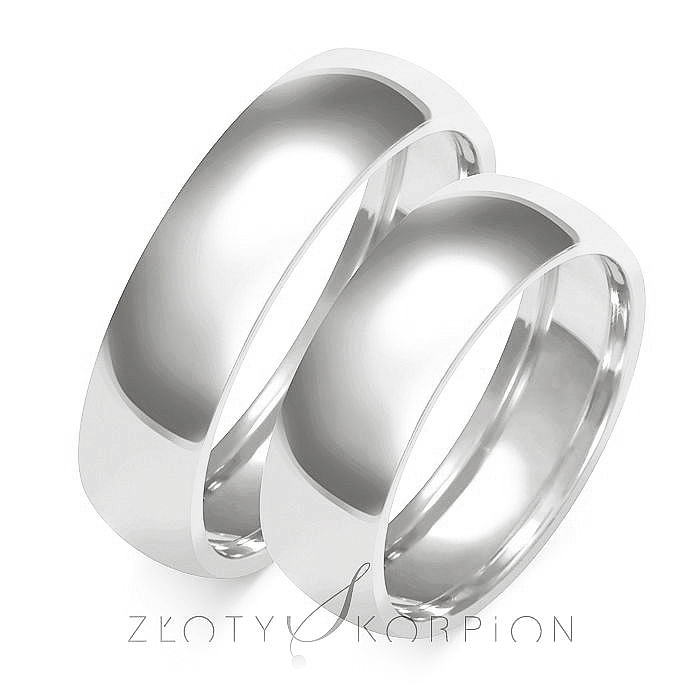 Obrączki ślubne o klasycznym półokrągłym kształcie wykonane z białego złota - wzór B-101