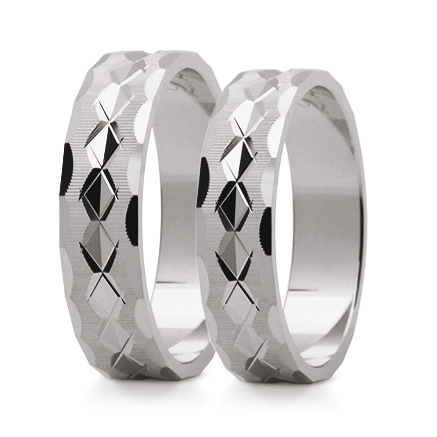 Jednokolorowe obrączki STELMACH wykonane z białego złota w technologii bezszwowej.  Powierzchnia jest częściowo polerowana a częściowo matowana (M9).