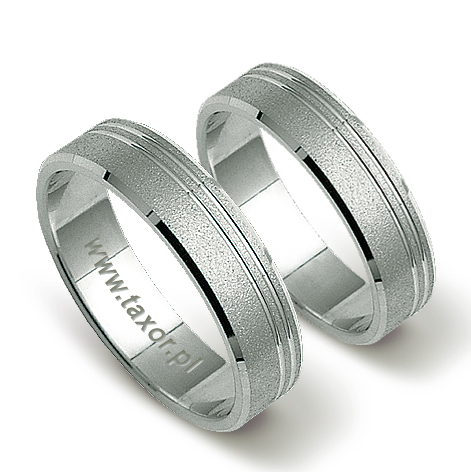 Obrączki z białego złota PZ STELMACH wzór 127 wykonane w technologii bezszwowej.  W standardzie użyto matu M4, ale producent dopuszcza różne rodzaje matowania lub wypolerowanie powierzchni na połysk.  Obrączkę ozdabiają dwa niesymetryczne rowki. W obrączce damskiej można oprawić kamienie: cyrkonie lub diamenty.