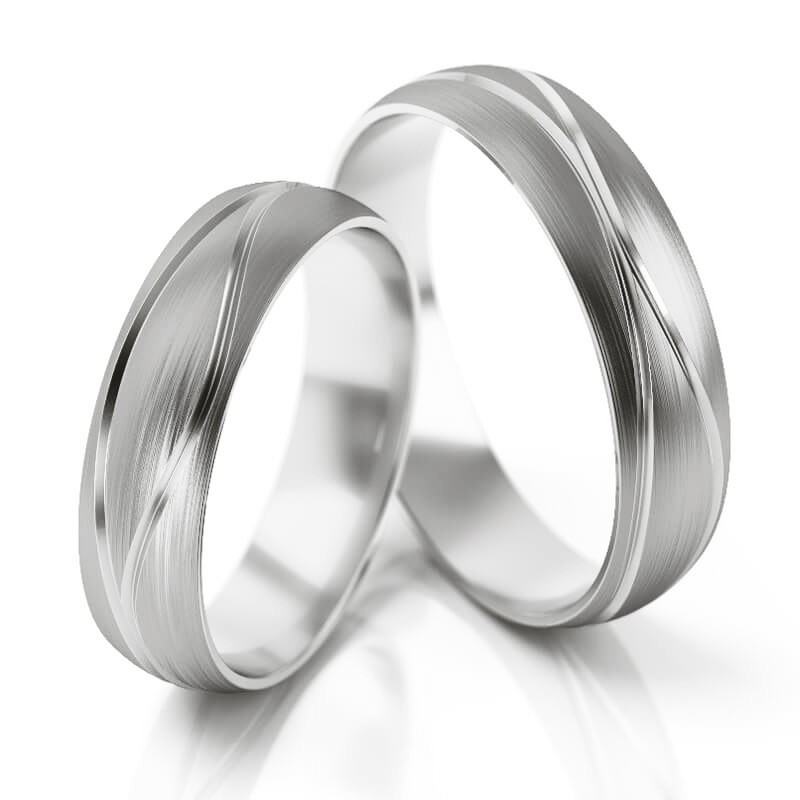 Standardowa szerokość tego wzoru wynosi 5 mm. W obrączce damskiej możemy oprawić brylanty lub cyrkonie. Na życzenie klienta możemy zmienić szerokość, kolor złota, wykończenie powierzchni lub zwiększyć wagę obrączek przez pogrubienie profilu (zwiększenie wysokości) i wykonanie tego wzoru w wersji bardziej masywnej.*
