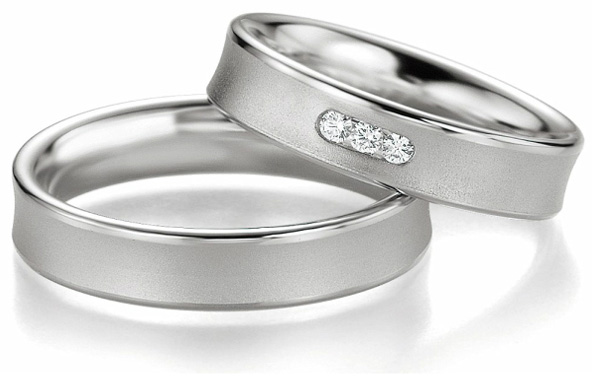 Obrączki palladowe wzór 2601 o szerokości 5 mm o ciekawym kształcie z lekko wklęsłą powierzchnią wewnętrzną. Obrączka damska w modelu zaprezentowanym na zdjęciu ozdobiona jest trzema brylantami W/Si o masie 0.03 ct każdy. Ilość brylantów można zmienić. Soczewkowy kształt wewnętrznej powierzchni (wyoblenie) zdecydowanie poprawia komfort noszenia. Obrączka nie uciska i zapobiega poceniu się palca. Profil jest tak perfekcyjnie dobrany, że praktycznie nie czuje się jej na palcu. Firma Breuning produkuje obrączki z palladu próby 950 lub 500. Zdecydowanie polecamy tę wyższą próbę. Obrączki z palladu w próbie 950 prezentuję się korzystniej, powierzchnia jest śnieżno biała. Wysoka zawartość palladu w stopie zapewnia też większą odporność na czynniki chemiczne i mechaniczne. Ten wzór można obejrzeć "na żywo" i przymierzyć w naszym największym salonie jubilerskim w Żywcu przy ul. Kościuszki 20. Szczegółowa informacja o obrączkach Breuning