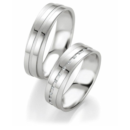Obrączki ślubne wzór 2613 mają szerokość 6 mm i wykonane są z doskonałej jakości stopu palladu. Na całym obwodzie wytoczono skośny rowek, w którym oprawione są drobne brylanty W/Si o łącznej masie 0.09 ct. Powierzchnia obrączki jest częściowo matowana a częściowo polerowana co czyni ten model bardzo interesującym. Obrączka jest bardzo wygodna w noszeniu pomimo dużej szerokości. Wyoblenie wewnątrz zapobiega poceniu się palca. Soczewkowy profil jest tak perfekcyjnie dobrany, że obrączki praktycznie nie czuje się jej na palcu. Dostęna jest próba palladu 500 i 950. Zdecydowanie polecamy tę wyższą próbę. Obrączki z palladu w próbie 950 prezentuję się korzystniej, powierzchnia jest śnieżno biała a wysoka zawartość palladu w stopie zapewnia większą odporność na czynniki chemiczne i mechaniczne.