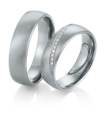 Firma Breuning wykonuje palladowe obrączki z najwyższej jakości stopów tego metalu próby 500 lub 950. Pallad jest lśniącym srebrzystoszarym metalem szlachetnym nieco ciemniejszym od platyny odpornym na czynniki chemiczne i mechaniczne. Próba 950 jest najwyższą stosowaną w jubilerstwie próbą i jest częściej wybierana w przypadku biżuterii wykonanej z palladu. Z naszych kilkuletnich obserwacji wynika, że obrączki niższej próby zachowują się równie dobrze w użytkowaniu, a ich cena jest znacznie niższa.