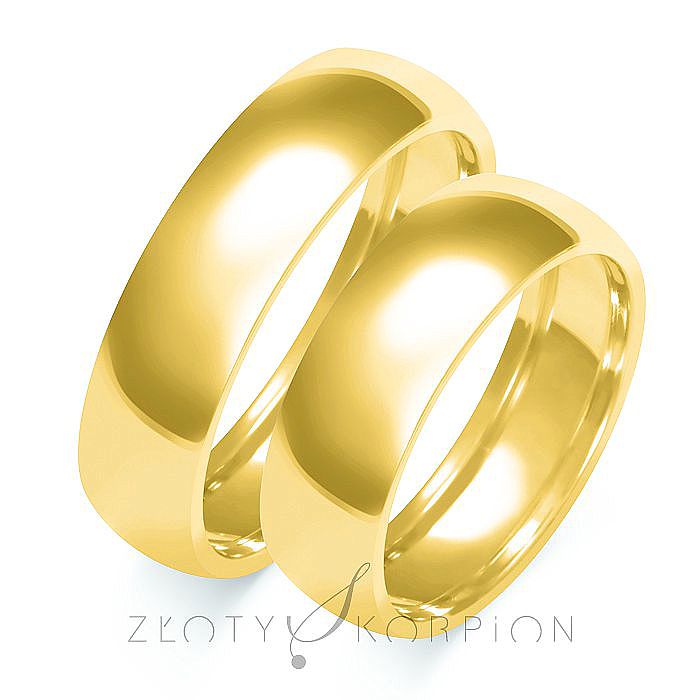 Obrączki ślubne o klasycznym półokrągłym kształcie z żółtego złota - wzór B-101