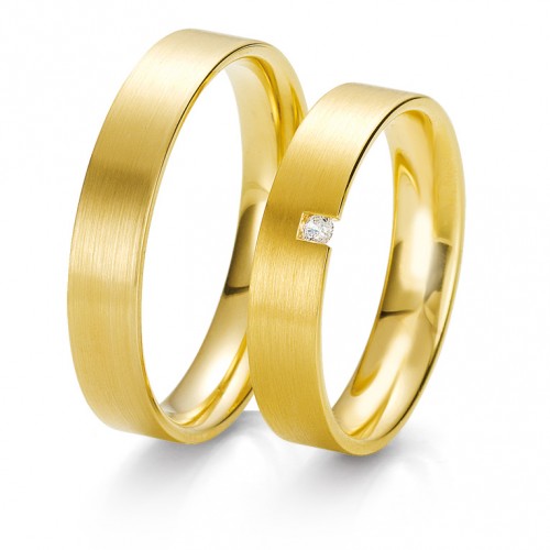Najwyższej jakości proste jednokolorowe obrączki Breuning wykonane w technologii bezszwowej. W obrączce damskiej w bocznym nacięciu oprawiony brylant.