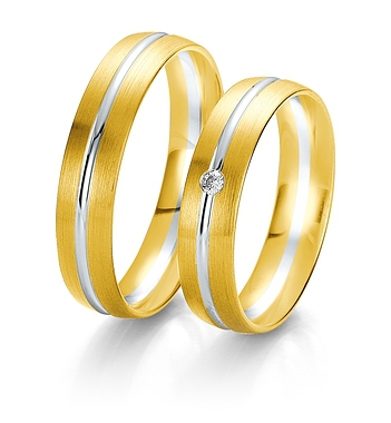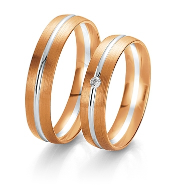 Najwyższej jakości dwukolorowe obrączki Breuning wykonane w technologii bezszwowej. W obrączce damskiej oprawiony brylant.