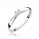 Pierścionek z białego złota z brylantem- wzór W-45. Klasyczny i ponadczasowy model pierścionka jest wykonany w całości z białego złota próby 585. Oprawa brylantu to cztery łapki, dzięki czemu diament wygląda zdecydowanie lepiej, wydaje się optycznie większy i pięknie się błyszczy. Barwa H, czystość Si i masa 0.10 ct opisana jest w dołączonym certyfikacie. Ten model możemy również wykonać w całości z żółtego złota próby 585. Do produkcji biżuterii użyto najwyższej jakości stopu złota próby 585 (próba 3, 14 karat).