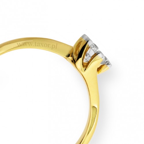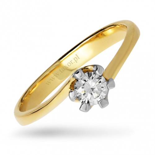 Pierścionek z żółtego złota próby 585 wzór B-165 brylantem o masie 0.25 ct (H/ SI). Pierścionki wykonujemy z najwyższej jakości stopów złota. Do przygotowania stopu złota używamy wyłącznie czystego złota i najlepszych importowanych ligur. Ten model możemy również wykonać w całości z białego złota próby 585 (próba 3, 14 karat).