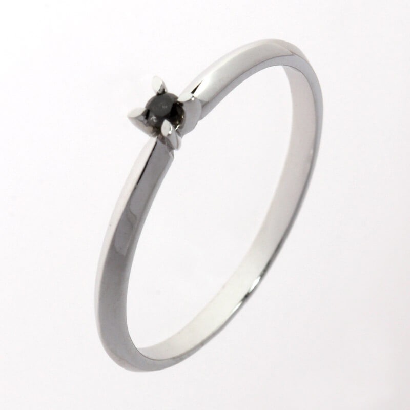 Pierścionek z czarnym diamentem o masie 0.035 ct wykonany z białego złota próby 375.