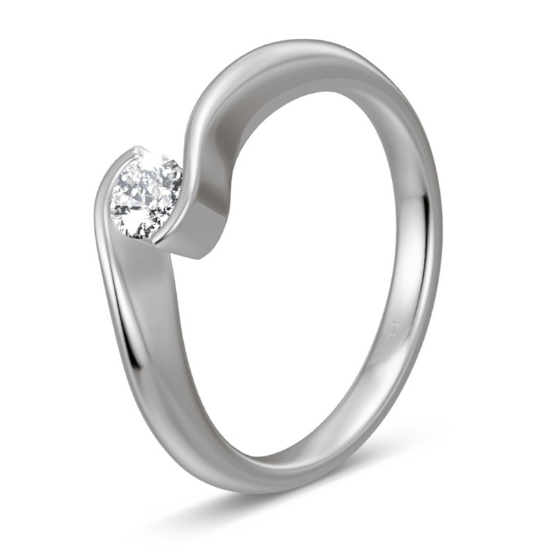 Pierścionek platynowy z brylantem o masie 0.25 ct o czystości SI i barwie H - wzór Pt-85943. Bardzo interesujący wzór z fantazyjną oprawą kamienia który jest dostępny również z  diamentami o większej lub mniejszej masie. Można też wykonać ten pierścionek z białego lub żółtego złota. Użyty do produkcji stop platyny zawiera aż 95% tego szlachetnego metalu, co w praktyce oznacza to, że jest to prawie czysta platyna. Biżuteria platynowa charakteryzuje się piękną srebrzystą barwą i niezwykłą trwałością. Wyroby jubilerskie z platyny dają się pięknie polerować i są znacznie twardsze niż wykonane z białego złota. Powierzchnia mniej się rysuje i pierścionek po wielu latach noszenia zachowuje swój pierwotny wygląd.