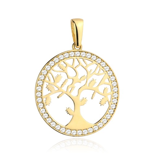 Złota zawieszka drzewko szczęścia w kole z cyrkonami to elegancka i zarazem symboliczna biżuteria, która łączy w sobie nowoczesność i klasykę. Motyw ten symbolizuje siłę, więzi rodzinne, życie, co czyni ją idealnym prezentem dla bliskiej osoby.