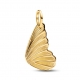 Platerowana 14-karatowym złotem zawieszka ma kształt skrzydła motyla, którego jedna strona jest ozdobiona żłobieniami, a druga polerowana i gotowa do grawerowania.