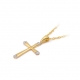 Klasyczny i elegancki złoty krzyżyk o wymiarach 12 x 23 mm, ozdobiony czterema brylantami każdy o masie 0,005 ct. Subtelny, a zarazem efektowny dodatek, który łączy klasykę z nowoczesnym blaskiem. Wykonany z najwyższej jakości złota, idealny jako prezent lub osobista pamiątka.