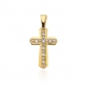 Klasyczny i elegancki złoty krzyżyk ozdobiony siedmioma brylantami, każdy o masie 0,005 ct. Wykonany z wysokiej jakości złota próby 585, emanuje blaskiem i ponadczasowym pięknem. Subtelny, a jednocześnie wyrazisty symbol wiary i stylu, idealny na prezent lub jako dodatek do codziennej biżuterii.
