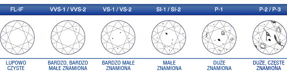- Wykończenie szlifu: jakość powierzchni diamentu, rozmieszczenia faset i poprawność ich kształtu.