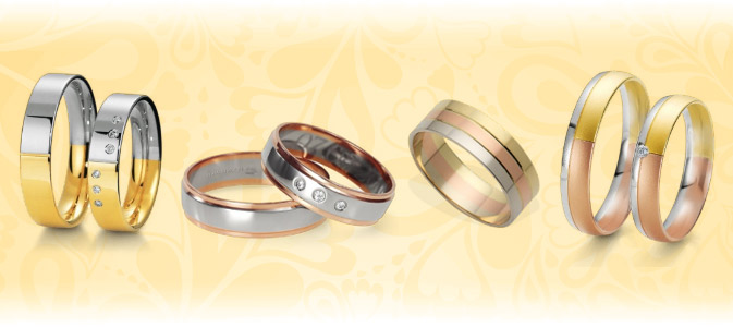 Obrączki wielokolorowe wykonuje się różnymi technikami. Najczęściej są to kolorowe pierścienie wykonane z żółtego, białego lub różowego złota w różny sposób ze sobą połączone.