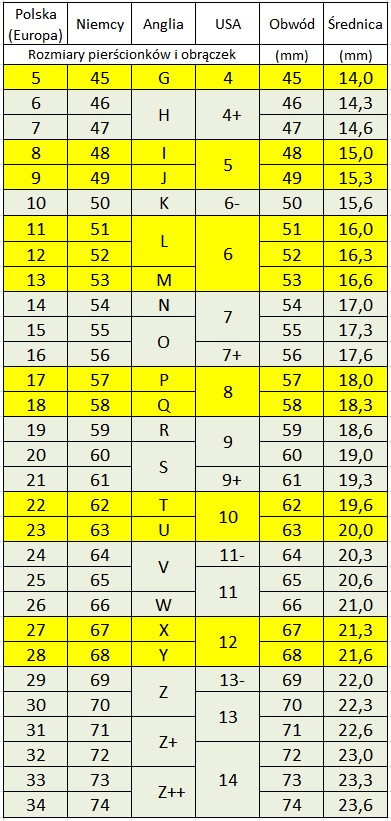 w domu rozmiary o różnych porach dnia i mieć pewność, ze obrączki będą pasować.